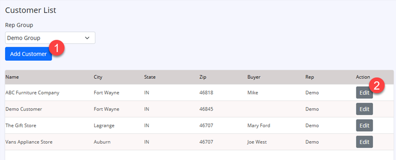 Click Edit button next to existing customer, to edit the customer. |