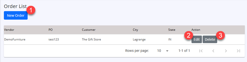 Click Delete button next to existing order, to delete the order. |