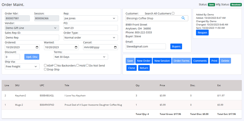 | 2) Order Entry Page Changes | Vendor Account nbr visibility, and ability to edit. |