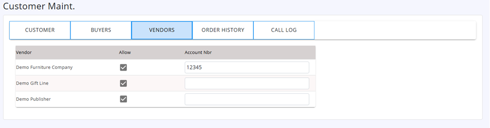 Click the Allow check box, to allow this vendor to be seen and used in the Retail Store Web Site for this account.