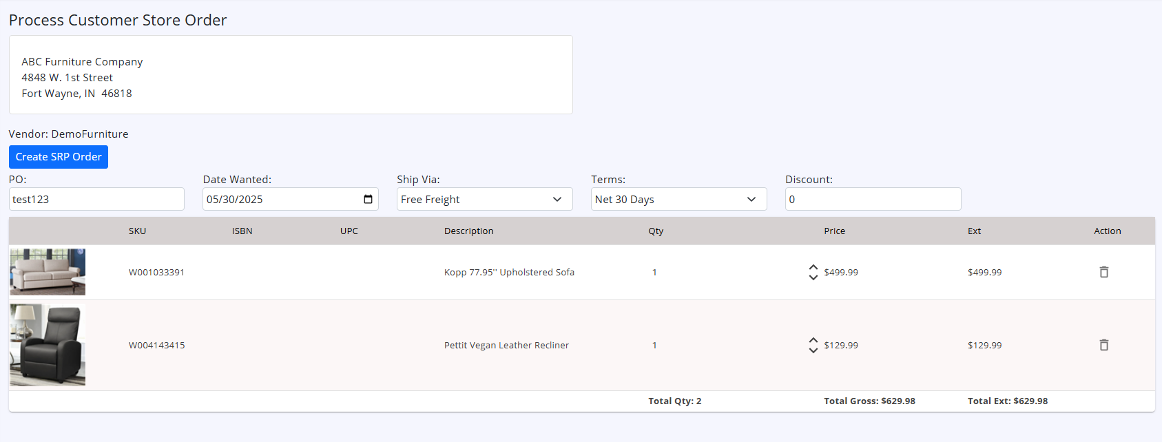 If customer sent POs for multiple vendors, you will each vendor's order separate, with separate Create SRP Order buttons