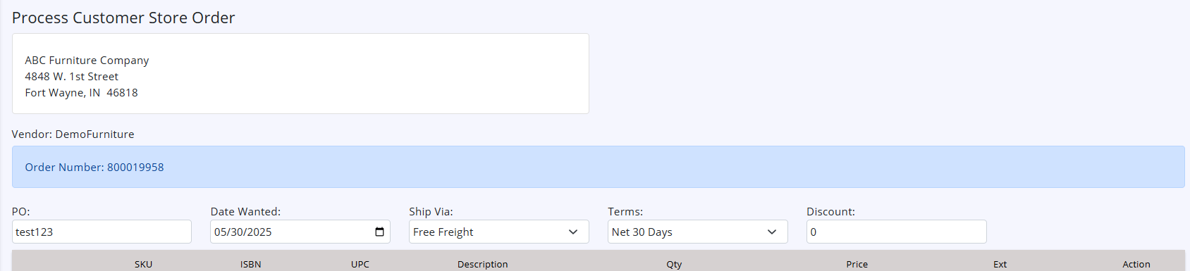 You may enter any part of Order number, PO Number, customer name, city, state to search for an item.