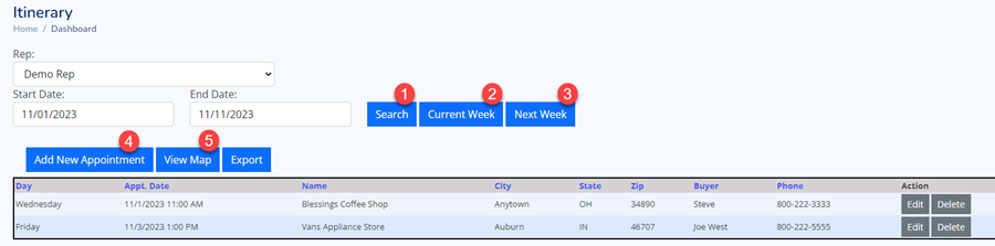 | 2) Current Week Button | Display all Store Appointments for current week. |