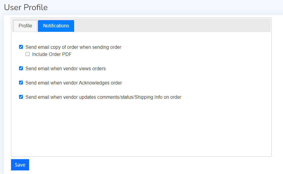 | 2) Vendor Email | This will be email address displayed on orders sent to vendors. |