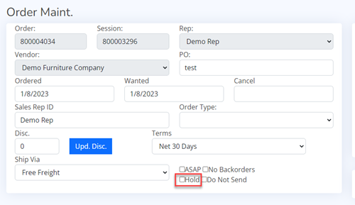 To Hold an order (Held orders will not send), Edit the order you wish to put on Hold.