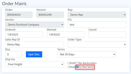 Orders Marked as Sent, will not send to vendor, but will be include in Sales Reports.