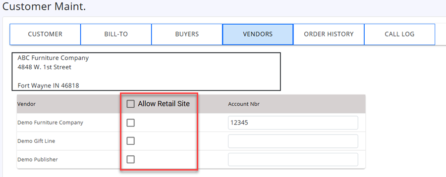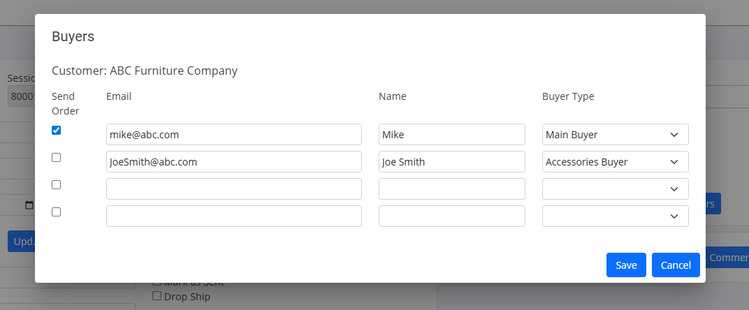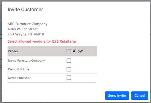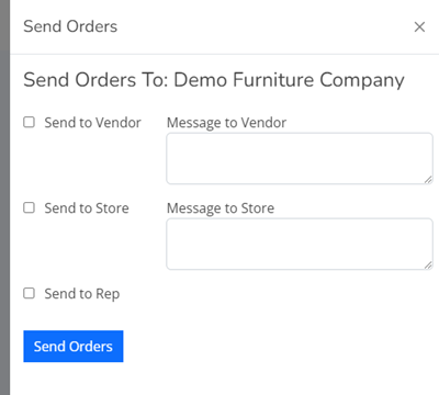 Check boxes to Send to Vendor, Send to Store, Send to Rep.